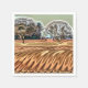 Un divertido diseño abstracto de campos arados (arados) y árboles en el fondo, un paisaje rural típico.
