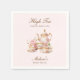 Servilleta de papel elegante para despedida de soltera con ilustración de tetera pastel y tazas de té con acentos dorados combinados con fuentes serif y script en las que se escribe su información personalizada. Consulte nuestra tienda para obtener más artículos de esta colección.
