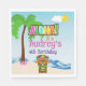 Playa Tropical de Luau cumpleaños servilletas de papel personalizadas, con tiki tiki lindo, palmera y escena de playa, con texto fácil de personalizar. Complete su fiesta temática de verano con este cartel personalizado, ideal para niños o adultos.