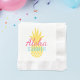 Las servilletas fiesta de cócteles Aloha Summer tienen un elegante texto rosa y turquesa y una piña tropical amarilla