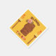 Esta servilleta de papel presenta un estilo retro Aloha Tiki Bar poster, con cabeza de tiki y antorchas de tiki, sobre un fondo amarillo de quemaduras de sol.