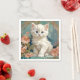 Las servilletas con un gato blanco al estilo de Alphonse Mucha! Este gatito de ojos azules y esponjoso posa con flores rosadas y mantas azules. ¡Un regalo fabuloso para los amantes del gato y de los coleccionistas Art Nouveau!
