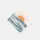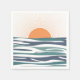 Resumen ilustracion de la salida del sol con sol naranja y decoración de olas de mar azul, blanco y turquesa