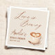 Agrega un toque acogedor a tu celebración con estas servilletas para despedida de soltera Love is Brewing Coffee Latte. Con tonos suaves de café con leche, letras elegantes y encantadores acentos de tazas de café, estas servilletas son perfectas para una despedida de soltera o reunión de brunch con tema de café. Elegantes y funcionales, mejoran la decoración de tu mesa mientras celebran a la futura novia con calidez y encanto. Personalízalas con nombres o fechas para un detalle considerado y memorable que encantará a tus invitados.