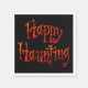 Texto "Happy Haunting" en letras naranjas espectrales, con unos cuantos ojos fantasmales, un diseño humorístico para una Halloween inquietante.