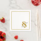 Las servilletas de boda de la novia y el novio. Gran ampersor dorado con nombres de novias y novios en texto de bloque negro y fecha de boda posicionada en la parte inferior derecha. Frontera de oro.