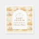 Un diseño dulce de safari estilo cuento que presenta tiernos animales bebé de acuarela, incluyendo leones, jirafas y elefantes rodeados de suave vegetación de la jungla y delicados detalles botánicos. La paleta cálida y neutral de crema, oro miel y suave oliva crea un estética atemporal inspirada en la naturaleza, mientras que el diseño elegante en forma de arco deja un hermoso espacio para detalles personalizados del evento.