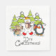 Un lindo y colorido Navidad diseño de periódico de vacaciones servilleta con un oso polar, pingüino y ratón todo con bufandas y patines de hielo con árboles cubiertos de nieve y texto que lee ¡Son Navidades!