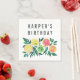 Moderna acuarela Citrus Toallas de cumpleaños para coincidir con nuestra colección de cumpleaños! Estas servilletas incluyen su nombre con limones acuarelas, limas, naranjas, pomelo rosa y follaje verde. Perfecto para un fiesta con temática cítrica o cóctel.