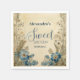 An elegant Sweet Sixteen design inspired by antique botanical prints and classic Art Nouveau framing. Soft ivory tones are layered with detailed blue florals, delicate foliage, and an ornamental border that feels straight out of a vintage herbarium.