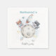Un diseño adorable con temática espacial con un diseño de acuarela con cohetes, planetas, estrellas y lindos animales de bosque astronauta un mapache y un oso este diseño cósmico añade un toque lúdico e imaginativo a tu celebración.