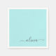 Servilleta De Papel Aqua Blue Verde azulada Girly Script Monograma Nom
