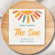 Esta servilleta de la ducha con temática solar está decorada con un sol colorido y una tipografía elegante con un fondo crema. El texto es personalizable. Acuarela original © Michele Davies.