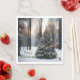 Estas servilletas navideñas cuentan con un brillante árbol de Navidad en el bosque.