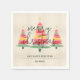 Hermosos acuarelas árboles de Navidad coronados con una estrella dorada a rayas de marfil acentúan estas servilletas con Feliz Navidad y Feliz Año Nuevo con letras de moda junto con tu nombre familiar. COINCIDIENDO elementos de nuestra colección.