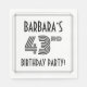 Este elegante diseño de servilletas de papel inspirado en el estilo de los años 20-30 e inspirado en la celebración de cuarenta y tres años/diseño de papel fiesta presenta un nombre de personalizable, un lujoso estilo Art Déco inspirado en el número "43", el mensaje "¡FIESTA DE CUMPLEAÑOS!" y un borde de varias líneas. Las servilletas de papel como estas pueden ser usadas en un fiesta realizado para celebrar el 43 cumpleaños de alguien. [~Z0000613]