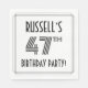 Este diseño inspirado en el estilo de los años 20-30 de la celebración de cuarenta y siete años/diseño de servilletas de papel fiesta presenta un nombre de personalizable, un intrincado estilo Art Déco inspirado en el número "47", el mensaje "¡FIESTA DE CUMPLEAÑOS!" y un borde multilínea. Las elegantes toallas de papel como estas podrían ser usadas al alojar a un fiesta para alguien en celebración de su 47 cumpleaños. [~Z0000613]