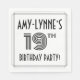 Este elegante diseño de servilleta de papel inspirado en el estilo de los años 1920-1930, inspirado en la celebración de los 19 años, presenta un nombre de personalizable, un elegante estilo Art Déco inspirado en el número "19", el mensaje "¡FIESTA DE CUMPLEAÑOS!" y un patrón fronterizo compuesto de líneas. Las servilletas de papel como estas podrían ser usadas en un fiesta realizado en celebración del decimonoveno cumpleaños de alguien. [~Z0000613]
