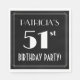 Este Roaring Twenties inspiró la celebración de 51 años/diseño de servilletas de papel fiesta con un nombre personalizado, un elegante estilo Art Deco inspirado en el número "51", el mensaje "¡FIESTA DE CUMPLEAÑOS!", y un patrón fronterizo compuesto de líneas. Presenta un fondo de color negro de forma predeterminada, pero se puede personalizar a un color diferente, si se desea. Las servilletas de papel como estas pueden ser usadas en un fiesta llevado a cabo para celebrar el cumpleaños número 51 de alguien. [~Z0000612]