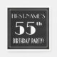 Este elegante diseño de servilletas de papel para celebraciones de 55 años incluye un nombre editable, un lujoso estilo Art Déco inspirado en el número "55", el mensaje "¡FIESTA DE CUMPLEAÑOS!" y un borde multilínea. Hay un fondo de color negro de forma predeterminada, pero se puede personalizar a un color diferente, si se desea. Las servilletas de papel como estas podrían ser usadas en una fiesta de cumpleaños para alguien que está celebrando su cumpleaños número 55. [~Z0000612]