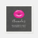 Toallas de papel de la fiesta de la soltera (u otro evento) con un ilustracion con labios rosados calientes. Imagen audaz y vibrante. Fijado sobre un fondo negro con mosaico.