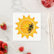 Ilustracion de atardecer tropical con decoración de palmera en forma de sol sobre fondo blanco
