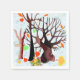 Esta imagen está diseñada como un día de otoño con la nieve cayendo. Los árboles están perdiendo sus hojas y los pavos están sentados sobre sus verduras y frutas. Un día para dar gracias. Hay un par de estilos diferentes disponibles. Estas servilletas están disponibles en 2 estilos y 2 tamaños.
