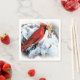 Cardenal vintage en invierno. Este pájaro rojo decorativo sostiene algunas joyas en su beca. Puedes personalizar esta servilleta de papel con tus propias palabras.