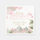 Flores rosas y la pintoresca cordillera "nuestra aventura comienza con el amor", servilletas personalizadas para complementar nuestra invitación a la boda de los Flores de Montaña. Personaliza con los nombres de la novia y del novio y la fecha del boda. Las flores de primavera rosada son acuarelas con dorado y tonos rosados.