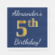 Servilleta De Papel Azul, Faux Gold 5 cumpleaños + Nombre personalizad