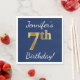 Servilleta De Papel Azul, Faux Gold 7 cumpleaños + Nombre personalizad
