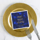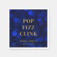 Servilleta elegante con las palabras "Pop Fizz Clink" en lámina dorada falsa sobre un fondo de luces bokeh azul zafiro. Perfecta para fiestas de compromiso, bodas, aniversarios, cumpleaños u otros eventos.