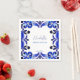 Plantilla de servilletas impresas para regadera de boda con azulejos azules Majolica mexicanos Talavera españoles franceses mediterráneos. Servilletas personalizadas con colores azules de azulejos acuarela moderna y fuente de escritura a mano moderna decoración de mesa personalizada