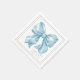 Un encantador diseño de servilleta para cóctel que presenta un gran lazo azul de acuarela en el centro. El nombre de la futura mamá se muestra en una fuente serif clásica, con "Baby Shower" escrito elegantemente debajo en caligrafía manuscrita. Alrededor de los bordes de la servilleta hay un sutil marco de doble línea en gris suave, que agrega un toque de sofisticación y equilibrio al diseño.