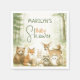 Step into an enchanting forest filled with love and laughter. This watercolor-style design features a delightful gathering of baby woodland animals—like fawns, foxes, raccoons, bear cubs, owlets, bunnies, and hedgehogs—nestled among soft ferns, mushrooms, and tall trees. With a dreamy forest backdrop and cozy natural tones, this design creates a tender, storybook scene perfect for celebrating the arrival of a little one. It's a gentle, heartwarming way to welcome your baby into the world.