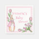Borde rosa y blanco roto conejito con una servilleta de papel de ducha de tipografía rosada coordinada con tulipanes de color agua y rosas. Perfecto para el tema más dulce de la ducha para bebés. Personalice el nombre de su futura madre.