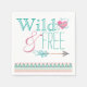 Chicas servilletas tribales de ducha de bebé con fondo de estilo indígena azteca pastel suroeste y elegante texto Wild and Free con corazón rústico y flecha. Puede agregar texto para personalizar y agregar un color de fondo.