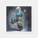 Una mujer anciana alegre está bailando y riendo, usando un par de gafas de sol con forma de estrella de tamaño excesivo y ropa y zapatillas vibrantes y coloridas