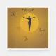 Imaginen un diseño cautivador que exude un aire de misteriosa elegancia. El color es cálido, con una bonita sombra de amarillo dorado que recuerda a la luminosidad del sol durante las horas de luz. En su corazón se encuentra un prominente círculo que simboliza la continuidad y la unidad. Dentro de este círculo enigmático, una silueta llamativa ocupa el centro del escenario. Una mujer, con su perfil marcadamente negro contra el fondo dorado, le da una elegante y expresiva pose de baile. Su forma transmite fuerza y fluidez, llamándose la atención con su atractivo. Alrededor de la silueta central, el diseño revela una escena fascinante de bailarinas en diferentes poses dinámicas, cada una abrazando el poder de la danza con pleno vigor y pasión. Estos bailarines parecen moverse en armonía, sus siluetas insinuando la alegre camaradería del momento. El matiz dorado, impregnado de calor, aporta un aura atractiva y radiante a la composición general. La combinación del misterioso y elegante círculo, la audaz silueta y las bailarinas circundantes crea una imagen evocadora y fascinante que celebra el arte de la danza y la unidad de las mujeres en su pasión y gracia compartidas. Es un diseño que combina sin esfuerzo la belleza con la intriga, dejando al observador cautivado por el enigmático encanto del baile.