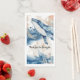Una hermosa ilustración en acuarela que presenta olas del océano de color azul marino y naranja a través de las cuales nada una gran ballena azul. Está rodeado de conchas, burbujas de marfil y espuma de mar dorada falsa. Estos son ideales para destino costero; bodas con tema de isla tropical y playa, baby showers y cumpleaños. Personalice las plantillas para adaptarlas a su ocasión.