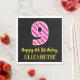 Este divertido diseño de servilletas de papel con temática de cumpleaños presenta un gran número "9" con un patrón de rayas rosa claro y rosa oscuro, junto con el mensaje "Feliz noveno cumpleaños", y un nombre personalizado. El fondo es negro de color. Las toallas de papel divertidas y personalizadas como esta pueden ser usadas en una celebración que se lleva a cabo para honrar el noveno cumpleaños de alguien. [~Z0000380]