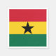 La bandera ghanesa es una tribanda horizontal con una estrella en el centro. Los colores usados en la bandera son rojo, verde, amarillo, negro. La proporción de la bandera ghanesa es de 2:3. La bandera de Ghana fue adoptada en 1966. El primer uso del diseño actual de la bandera fue en 1957. El último cambio al diseño actual de la bandera ghanesa fue en 1957.