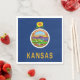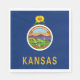 Este diseño presenta la bandera de Kansas, que es un estado en el Medio Oeste de Estados Unidos. Kansas está rodeada por Nebraska al norte, Missouri al este, Oklahoma al sur y Colorado al oeste. Kansas lleva el nombre del río Kansas, que a su vez recibió el nombre de los nativos estadounidenses de Kansa que vivían a lo largo de sus orillas. El apodo oficial de Kansas es el "Estado Girasol", pero también se le conoce como el "Estado Trigo", el "Estado Jayhawker" y el "Estado Libre". La bandera del estado de Kansas incluye el sello del estado y una representación de un girasol. La bandera fue diseñada por primera vez en 1927, y este diseño original fue modificado en 1961 para agregar el nombre del estado en la parte inferior de la bandera. La capital de Kansas es Topeka y su ciudad más grande es Wichita. Otras ciudades importantes de Kansas son Overland Park, Kansas City, Olathe, Lawrence, Shawnee, Manhattan, Lenexa, Salina, Hutchinson, Leavenworth, Leawood, Dodge City, Garden City, Emporia, Derby, Junction City, Prairie Village, Gardner, Hays, Pittsburg, Liberal, Newton y Great Bend.