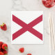 Este diseño presenta la bandera de Alabama, un estado en la región sureste de los Estados Unidos. Tennessee limita al norte con Georgia al este, Florida y el Golfo de México al sur, y Mississippi al oeste. Alabama es apodada el estado Yellowhammer, por el ave estatal. Alabama también es conocido como el "Corazón de Dixie" y el "Estado Algodón". El árbol estatal es el pino de hoja larga, y la flor del estado es la camelia. La capital de Alabama es Montgomery, mientras que la ciudad más grande por población es Birmingham. Otras ciudades importantes de Alabama son Huntsville, Mobile, Tuscaloosa, Hoover, Dothan, Auburn, Decatur, Madison, Florencia, Phenix City, Prattville, Gadsden y Vestavia Hills.