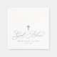 Dusty Blue God Bendice Baptismo o servilletas de Primera Comunión: Estas elegantes servilletas de bautismo presentan un suave y polvoriento guion azul que dice "Dios Bendiga" con una cruz simple. Personalizados con el nombre y la fecha de su hijo, le dan un toque pacífico e intemporal a su celebración.