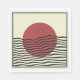 Arte mural minimalista de Bauhaus con un atrevido sol rojo y olas negras. Moderno, abstracto y perfecto para una decoración elegante en casa.