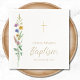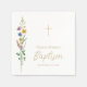 Esta servilleta floral de papel de Baptism incluye flores silvestres y una cruz con tipografía de escritura elegante. Personalizable fácil. Acuarela original © Michele Davies.