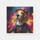 Un Beagle juguetón vestido con un disfraz vibrante y caprichoso contra un telón de fondo brillante y mágico. Este encantador diseño es perfecto para los amantes de los animales.
