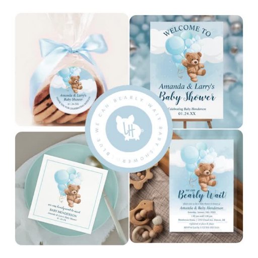 Estas toallas de oso azul Bearly Wait son perfectas para cualquier ducha de bebé. Esto es parte de la suite Baby Shower "We can Bearly Wait" (Podemos esperar temprano) para celebrar a su bebé en el camino.