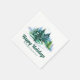 This beautiful custom business holiday party napkin features gorgeous green Christmas trees in a winter landscape above your customized company name and Happy Holidays. Personalized holiday decor for a corporation or family.